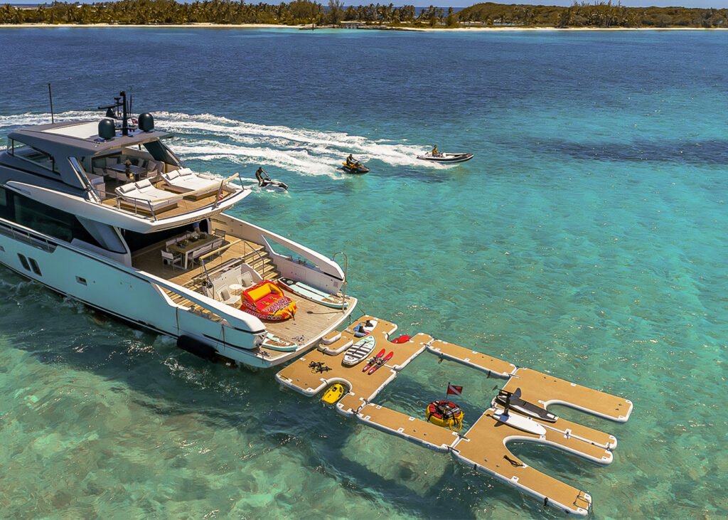 Enhance your boating experience with our inflatable docking platforms, designed to create safe, stable and spacious access around your yacht. Available in ready made solutions or fully custom designs, each platform is engineered for strength, ease of use and seamless integration.